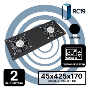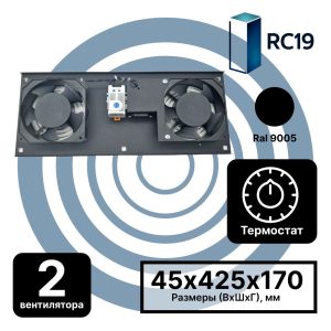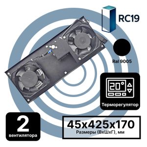 RC19 MV-400-2Т-9005 Модуль вентиляторный потолочный 170х425, 2 вентилятора с термостатом 0…+60 °C, черный RAL 9005 RC19