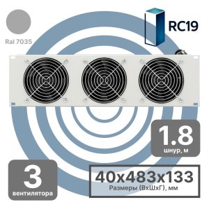 RC19 MV-400-3С/3U Модуль вентиляторный 19amp;quot;, 3U, 3 вентилятора со шнуром питания 1,8 цвет серый Ral 7035