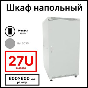 RC19 RP-27.6.6-ММ.7035 Шкаф напольный 27U 600x600x1320мм (ШхГхВ) телекоммуникационный 19amp;quot;, передняя дверь металлическаяическая – задняя дверь металлическаяическая, цвет серый RAL7035) (5 мест)