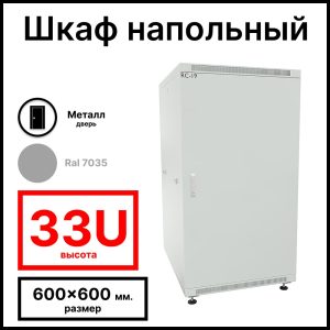 RC19 RP-33.6.6-МS.7035 Шкаф напольный 33U 600×600х1587мм (ШхГхВ) телекоммуникационный 19amp;quot;, передняя дверь металлическаяическая – задняя металлическая панель, цвет серый RAL 7035