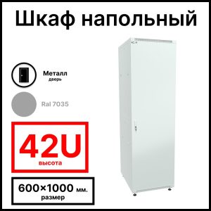 RC19 RP-42.6.10-ММ.7035 Шкаф напольный 42U 600x1000x1987мм (ШхГхВ) телекоммуникационный 19amp;quot;, передняя дверь металлическаяическая – задняя дверь металлическаяическая, цвет серый RAL 7035