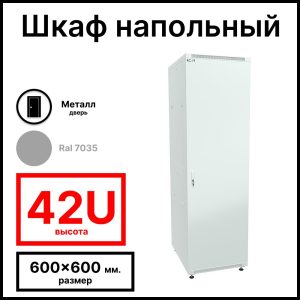 RC19 RP-42.6.6-МS.7035 Шкаф напольный 42U 600×600х1987мм (ШхГхВ) телекоммуникационный 19amp;quot;, передняя дверь металлическаяическая – задняя металлическая панель, цвет серый RAL 7035