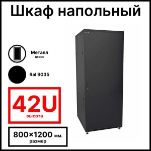 RC19 RP-42.8.12-ММ.9005 Шкаф напольный 42U 800×1200х1987мм (ШхГхВ) телекоммуникационный 19amp;quot;, передняя дверь металлическая – задняя дверь металлическая, цвет черный RAL 9005