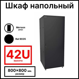 RC19 RP-42.8.8-ММ.9005 Шкаф напольный 42U 800×800х1987мм (ШхГхВ) телекоммуникационный 19amp;quot;, передняя дверь металлическая – задняя дверь металлическая, цвет черный RAL 9005