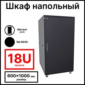 RC19 RP-18.6.10-MM.9005 Шкаф напольный 18U 600x1000x920мм (ШхГхВ) телекоммуникационный 19amp;quot;, передняя дверь металлическая – задняя дверь металлическая, цвет черный RAL 9005