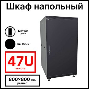 RC19 RP-47.8.8-ММ.9005 Шкаф напольный 47U 800×800х2209мм (ШхГхВ) телекоммуникационный 19amp;quot;, передняя дверь металлическая – задняя дверь металлическая, цвет черный RAL 9005