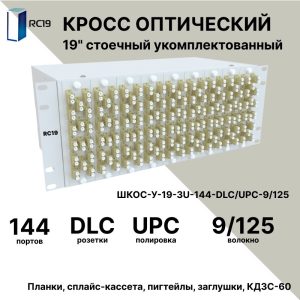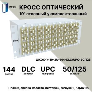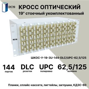 RC19 ШКОС-У-19-4U-144-DLC/UPC-62,5/125 Кросс оптический 19amp;quot; стоечный 4U на 144 порта LC/UPC duplex 62,5/125мкм укомплектованный оптический бокс (пигтейл LC/UPC 62,5/125-288шт, розетка DLC-144шт, КДЗС-288шт)