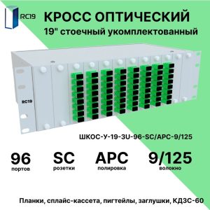 RC19 ШКОС-У-19-3U-96-SС/APC-9/125 Кросс оптический 19amp;quot; стоечный 3U на 96 портов SС/APC 9/125мкм укомплектованный оптический бокс (пигтейл SС/APC 9/125-96шт, розетка SС/APC-96шт, КДЗС-96шт)