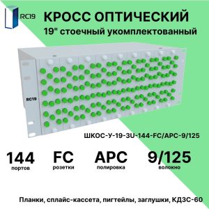 RC19 ШКОС-У-19-4U-144-FС/APC-9/125 Кросс оптический 19amp;quot; стоечный 4U на 144 порта FС/APC 9/125мкм укомплектованный оптический бокс (пигтейл FС/APC 9/125-144шт, розетка FС-144шт, КДЗС-144шт)