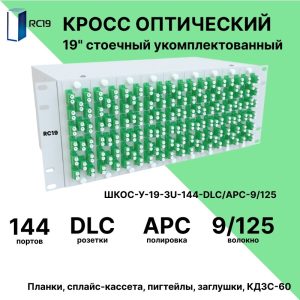 RC19 ШКОС-У-19-4U-144-DLC/APC-9/125 Кросс оптический 19amp;quot; стоечный 4U на 144 порта LC/APC duplex 9/125мкм укомплектованный оптический бокс (пигтейл LC/APC 9/125-288шт, розетка DLC-144шт, КДЗС-288шт)