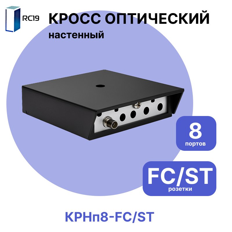 Настенный оптический бокс пластиковый КРНп на 8 портов FC/ST, с держателем на 16 гильз RC19