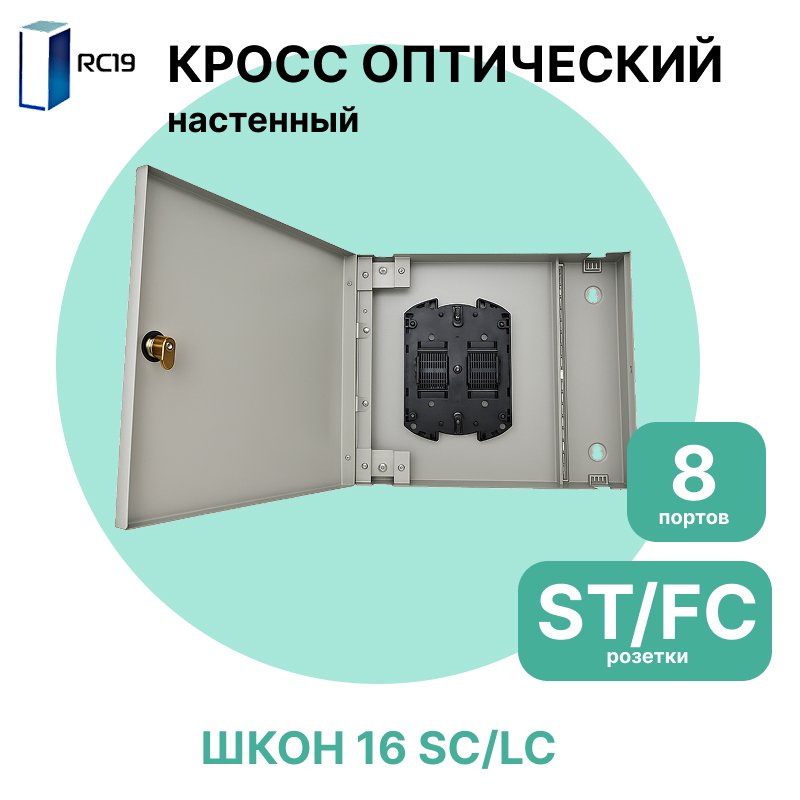 RC19 Кросс настенный | Кросс оптический настенный | 16 портов , SC/LC розеток, сплайс-кассета с крышкой (пигтейлы, проходные адаптеры, КДЗС опция)
