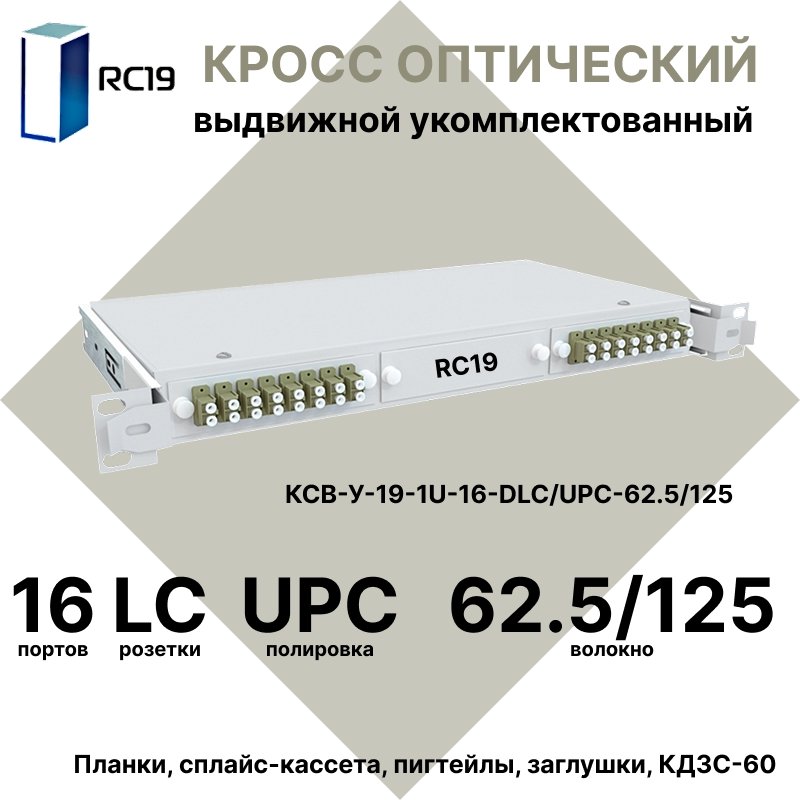 Купить по выгодной цене RC19 КСВ-У-19-1U-16-DLC/UPC-62.5/125 Кросс оптический 19amp;quot; выдвижной 1U на 16 портов DLC 62,5/125мкм укомплектованный (пигтейл LC 62.5/125-32шт, розетка DLC-16шт, сплайс кассета с крышкой-1шт, КДЗС-32шт) в Anbik. Доставка по Москве и России. Самовывоз.