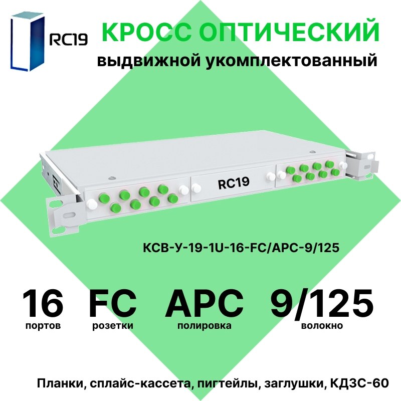 Купить по выгодной цене RC19 КСВ-У-19-1U-16-FC/APC-9/125 Кросс оптический 19amp;quot; выдвижной 1U на 16 портов FC/APC 9/125мкм укомплектованный (пигтейл FC/APC 9/125-16шт, розетка FC-16шт, сплайс кассета с крышкой-1шт, КДЗС-16шт) в Anbik. Доставка по Москве и России. Самовывоз.