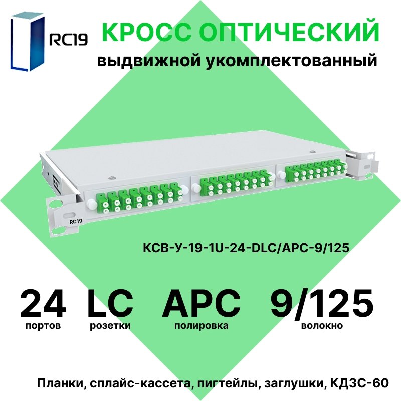 Купить по выгодной цене RC19 КСВ-У-19-1U-24-DLC/APC-9/125 Кросс оптический 19amp;quot; стоечный 1U на 24 портов LC/APC duplex 9/125мкм укомплектованный (пигтейл LC/APC 9/125-48шт, розетка DLC-24шт, сплайс кассета – 2шт, крышка для сплайс кассеты-1шт, КДЗС-48шт) в Anbik. Доставка по Москве и России. Самовывоз.