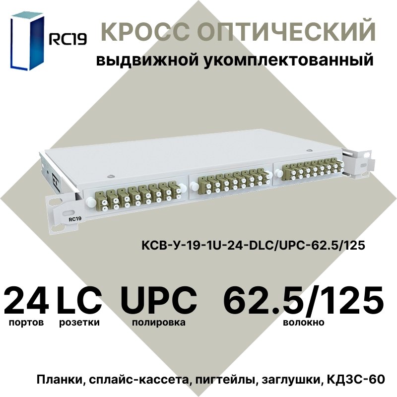 Купить по выгодной цене RC19 КСВ-У-19-1U-24-DLC/UPC-62.5/125 Кросс оптический 19amp;quot; выдвижной 1U на 24 портов DLC 62,5/125мкм укомплектованный (пигтейл LC 62.5/125-48шт, розетка DLC-24шт, сплайс кассета – 2шт, крышка для сплайс кассеты-1шт, КДЗС-48шт) в Anbik. Доставка по Москве и России. Самовывоз.