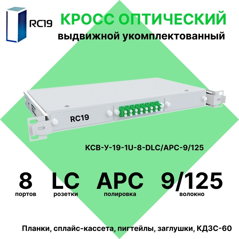 Купить по выгодной цене RC19 КСВ-У-19-1U-8-DLC/APC-9/125 Кросс оптический 19amp;quot; выдвижной 1U на 8 портов DLC 50/125мкм укомплектованный (пигтейл LC 50/125 (OM2)-16шт, розетка DLC-8шт, сплайс кассета с крышкой-1шт, КДЗС-16шт) в Anbik. Доставка по Москве и России. Самовывоз.