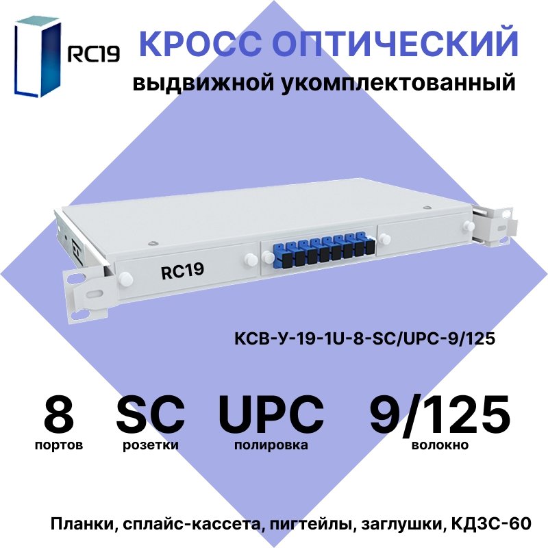 Купить по выгодной цене RC19 КСВ-У-19-1U-8-SC/UPC-9/125 Кросс оптический 19amp;quot; выдвижной 1U на 8 портов SC/UPC 9/125мкм укомплектованный (пигтейл SC/UPC 9/125-8шт, розетка SC-8шт, сплайс кассета с крышкой-1шт, КДЗС-8шт) в Anbik. Доставка по Москве и России. Самовывоз.
