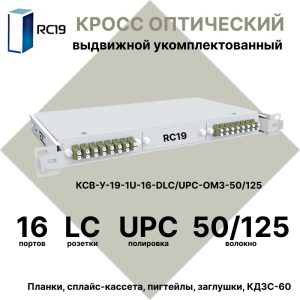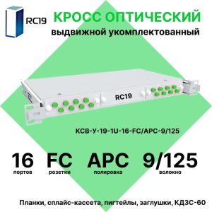 RC19 КСВ-У-19-1U-8-ST/UPC-62.5/125 Кросс оптический 19amp;quot; выдвижной 1U на 8 портов ST 62,5/125мкм укомплектованный (пигтейл ST 62,5/125-8шт, розетка ST-8шт, сплайс кассета с крышкой-1шт, КДЗС-8шт)