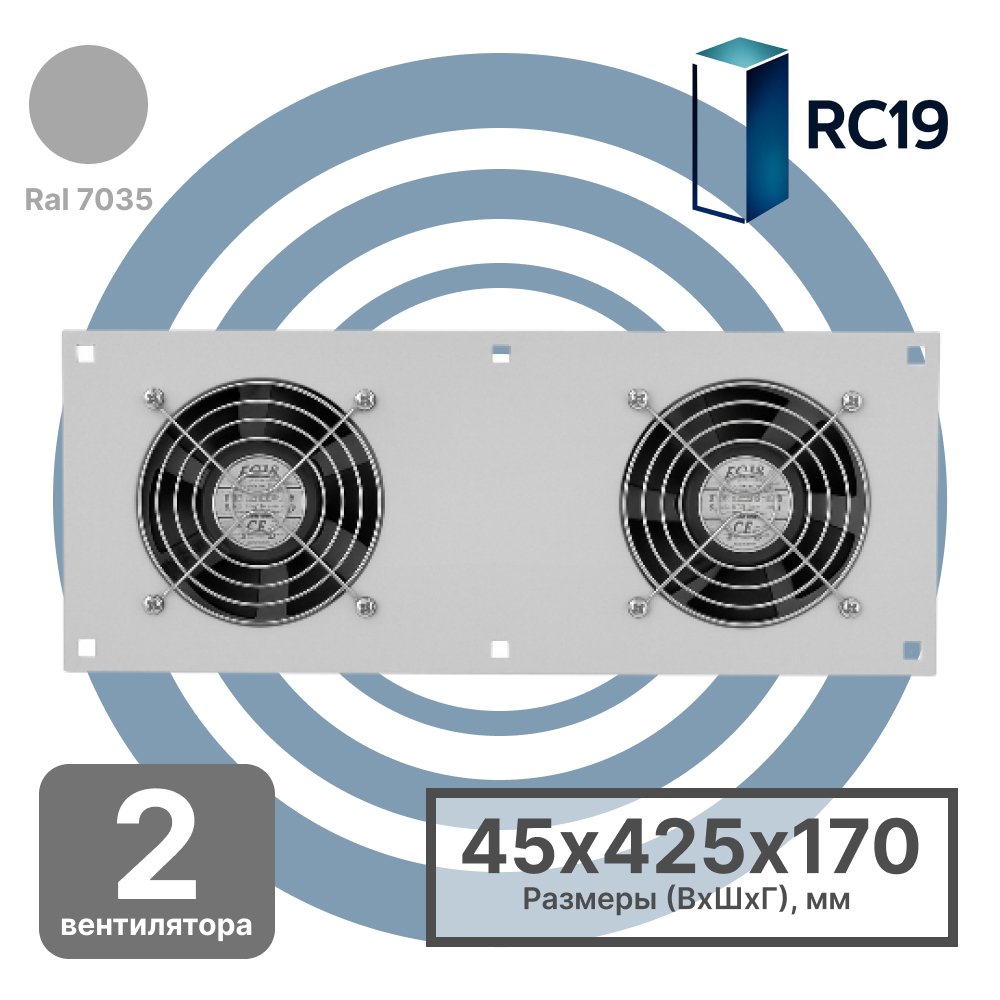 Купить по выгодной цене RC19 MV-400-2 Модуль вентиляторный потолочный 170х425мм, 2 вентилятора, цвет серый Ral 7035 в Anbik. Доставка по Москве и России. Самовывоз.
