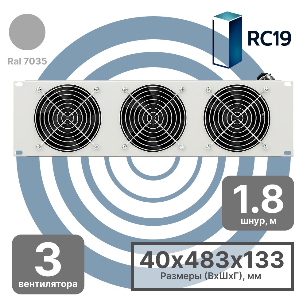Купить по выгодной цене RC19 MV-400-3С/3U Модуль вентиляторный 19amp;quot;, 3U, 3 вентилятора со шнуром питания 1,8 цвет серый Ral 7035 в Anbik. Доставка по Москве и России. Самовывоз.