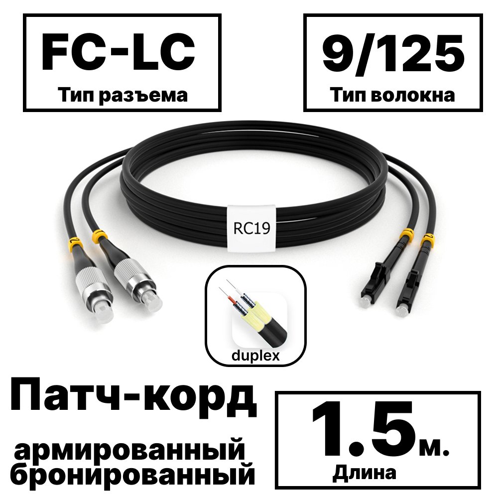Купить по выгодной цене RC19 PC-ARM-2×3,0-2FC/UPC-2LC/UPC-SM-1.5м-LSZH-BK Патч-корд оптический армированный бронированный duplex FC-LC 9/125 (G.657A1) одномодовый SM (3.0мм) LSZH, цвет черный, 1,5м в Anbik. Доставка по Москве и России. Самовывоз.