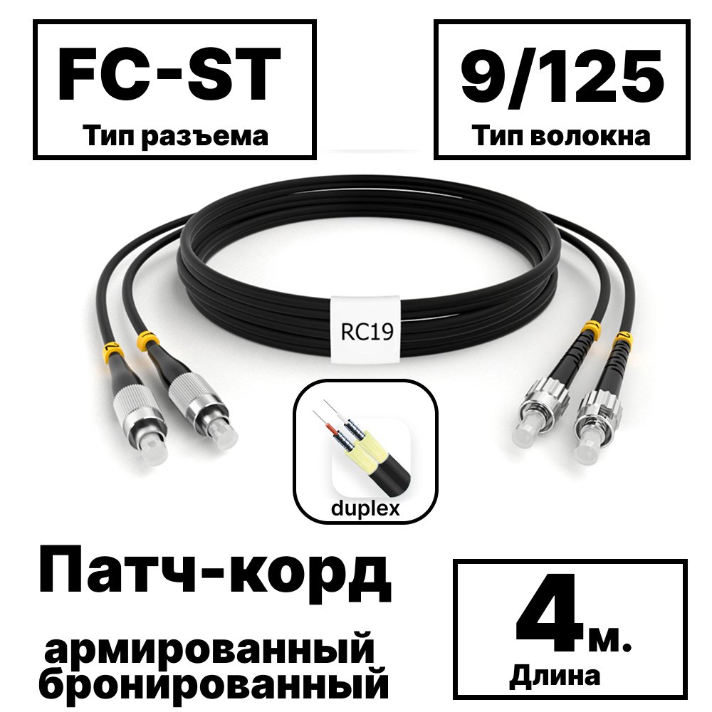 Купить по выгодной цене RC19 PC-ARM-2×3,0-2FC/UPC-2ST/UPC-SM-4м-LSZH-BK Патч-корд оптический армированный бронированный duplex FC-ST 9/125 (G.657A1) одномодовый SM (3.0мм) LSZH, цвет черный, 4м в Anbik. Доставка по Москве и России. Самовывоз.