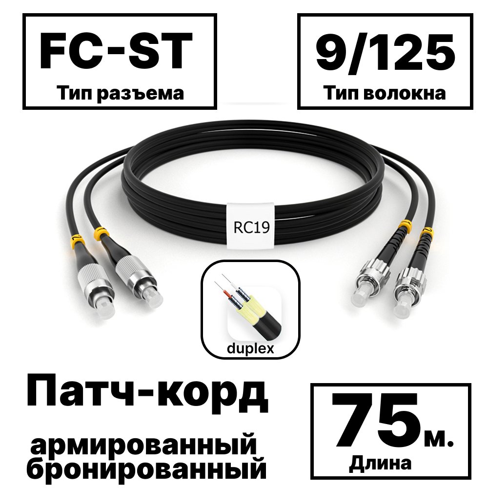 Купить по выгодной цене RC19 PC-ARM-2×3,0-2FC/UPC-2ST/UPC-SM-75м-LSZH-BK Патч-корд оптический армированный бронированный duplex FC-ST 9/125 (G.657A1) одномодовый SM (3.0мм) LSZH, цвет черный, 75м в Anbik. Доставка по Москве и России. Самовывоз.
