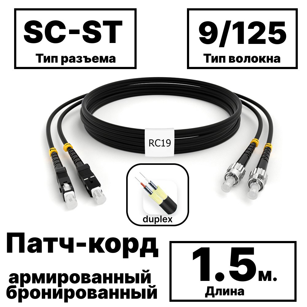 Купить по выгодной цене RC19 PC-ARM-2×3,0-2SC/UPC-2ST/UPC-SM-1.5м-LSZH-BK Патч-корд оптический армированный бронированный duplex SC-ST 9/125 (G.657A1) одномодовый SM (3.0мм) LSZH, цвет черный, 1,5м в Anbik. Доставка по Москве и России. Самовывоз.