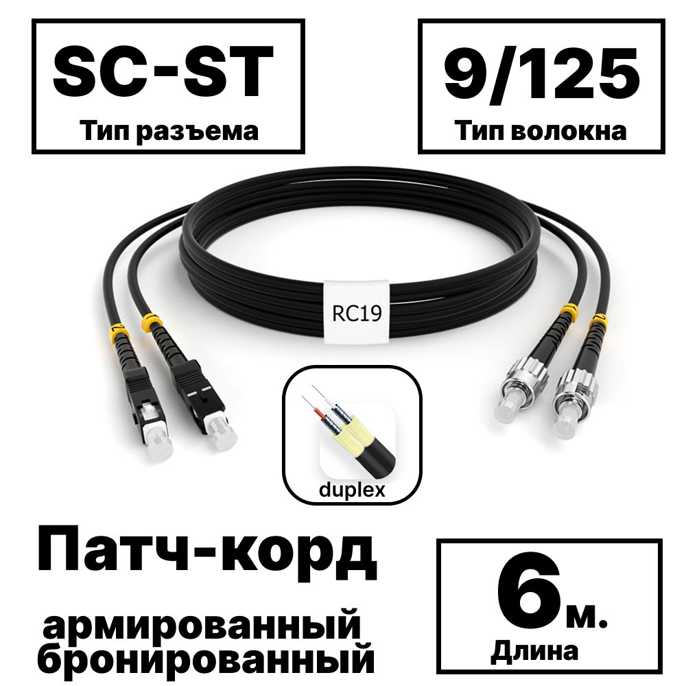 Купить по выгодной цене RC19 PC-ARM-2×3,0-2SC/UPC-2ST/UPC-SM-6м-LSZH-BK Патч-корд оптический армированный бронированный duplex SC-ST 9/125 (G.657A1) одномодовый SM (3.0мм) LSZH, цвет черный, 6м в Anbik. Доставка по Москве и России. Самовывоз.
