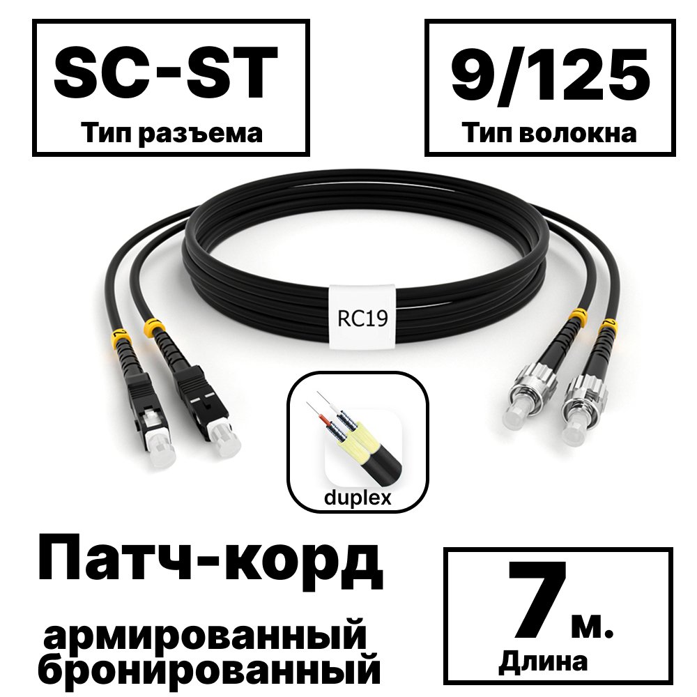 Купить по выгодной цене RC19 PC-ARM-2×3,0-2SC/UPC-2ST/UPC-SM-7м-LSZH-BK Патч-корд оптический армированный бронированный duplex SC-ST 9/125 (G.657A1) одномодовый SM (3.0мм) LSZH, цвет черный, 7м в Anbik. Доставка по Москве и России. Самовывоз.