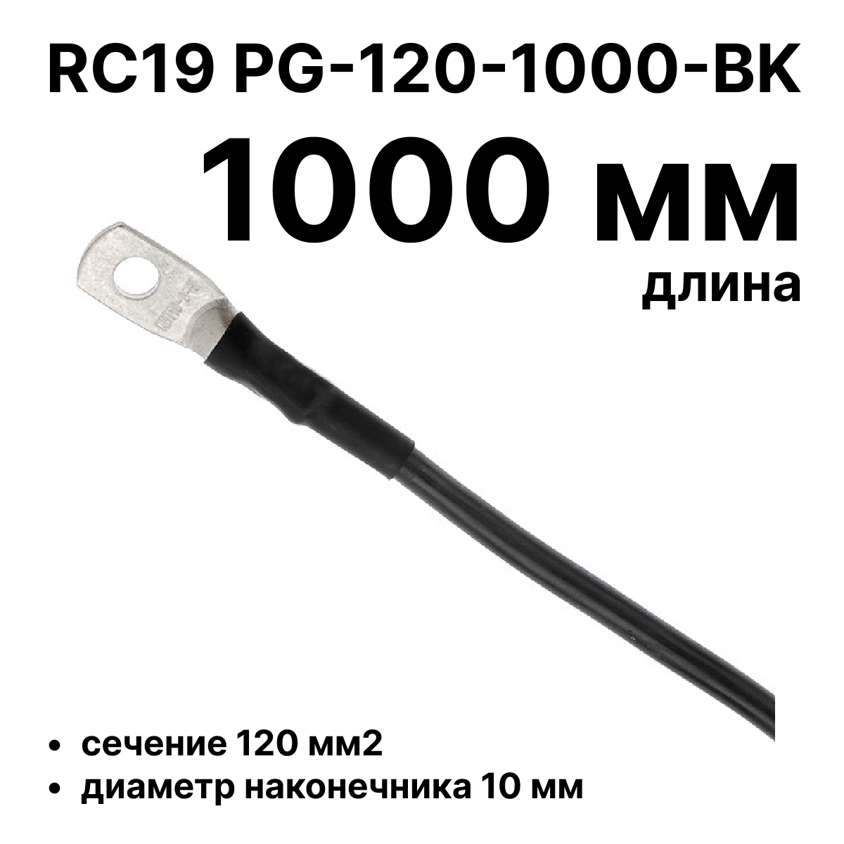 Купить по выгодной цене RC19 PG-120-1000-BK Перемычка ПВ3/ПуГВ черная, сечение 120 мм2, длина 1000 мм, диаметр отверстия наконечника 10 мм в Anbik. Доставка по Москве и России. Самовывоз.