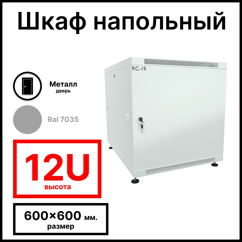 RC19 RP-12.6.6-ММ.7035 Шкаф 12U 600x600x623мм (ШхГхВ) телекоммуникационный 19amp;quot; напольный, передняя дверь металлическая - задняя дверь металлическая, цвет серый RAL7035