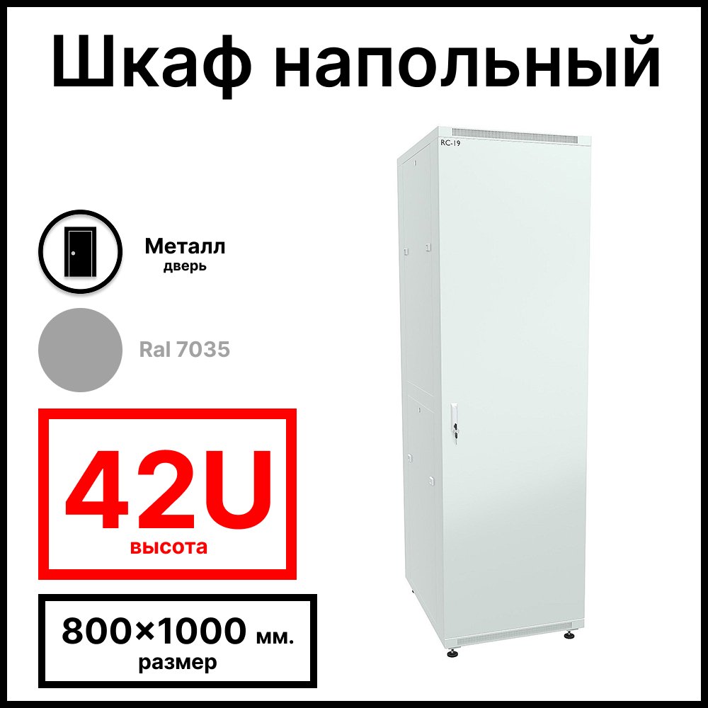 Купить по выгодной цене RC19 RP-42.8.10-ММ.7035 Шкаф напольный 42U 800×1000х1987мм (ШхГхВ) телекоммуникационный 19amp;quot;, передняя дверь металлическаяическая – задняя дверь металлическаяическая, цвет серый RAL 7035 в Anbik. Доставка по Москве и России. Самовывоз.