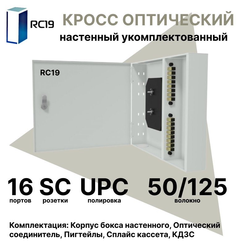 Купить по выгодной цене RC19 ШКОН-У-16-SC/UPC-50/125 Кросс оптический настенный на 16 портов SC 50/125мкм предсобранный (пигтейл SC 50/125-16шт, розетка SC-16шт, планки SC/DLC, сплайс кассета с крышкой-1шт, КДЗС-16шт) Оптический настенный бокс укомплектованный 16 SC/UPC в Anbik. Доставка по Москве и России. Самовывоз.