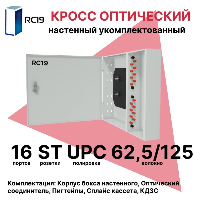 Купить по выгодной цене RC19 ШКОН-У-16-ST/UPC-62,5/125 Кросс оптический настенный на 16 портов ST 62,5/125мкм предсобранный (пигтейл ST 62,5/125-16шт, розетка ST-16шт, планки FC/ST, сплайс кассета с крышкой-1шт, КДЗС-16шт) Оптический настенный бокс укомплектованный 16 ST/UPC в Anbik. Доставка по Москве и России. Самовывоз.