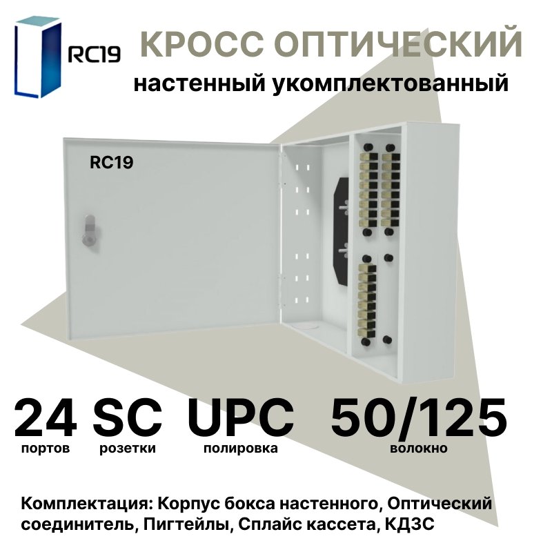 Купить по выгодной цене RC19 ШКОН-У-24-SC/UPC-50/125 Кросс оптический настенный на 24 порта SC 50/125мкм предсобранный (пигтейл SC 50/125-24шт, розетка SC-24шт, планки SC/DLC, сплайс кассета с крышкой-1шт, КДЗС-24шт) Оптический настенный бокс укомплектованный 24 SC/UPC в Anbik. Доставка по Москве и России. Самовывоз.