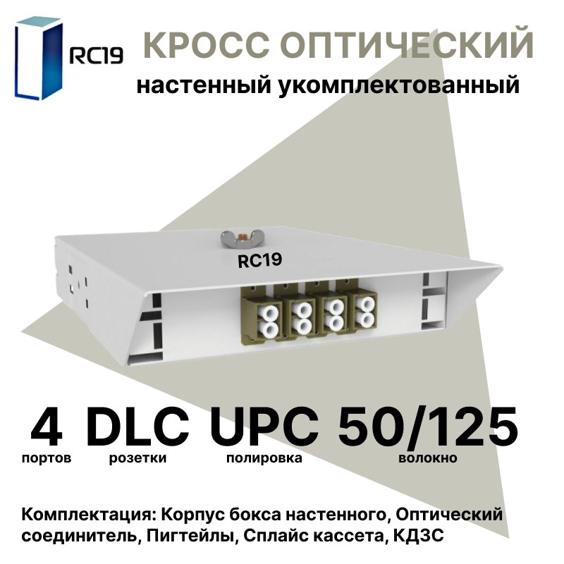 Купить по выгодной цене RC19 ШКОН-У-4-DLC/UPC-ОМ3-50/125 Кросс оптический настенный на 4 порта DLC 50/125мкм (ОМ3) предсобранный (пигтейл LC 50/125 (ОМ3)-8шт, розетка DLC-4шт, ложемент, КДЗС-8шт) в Anbik. Доставка по Москве и России. Самовывоз.