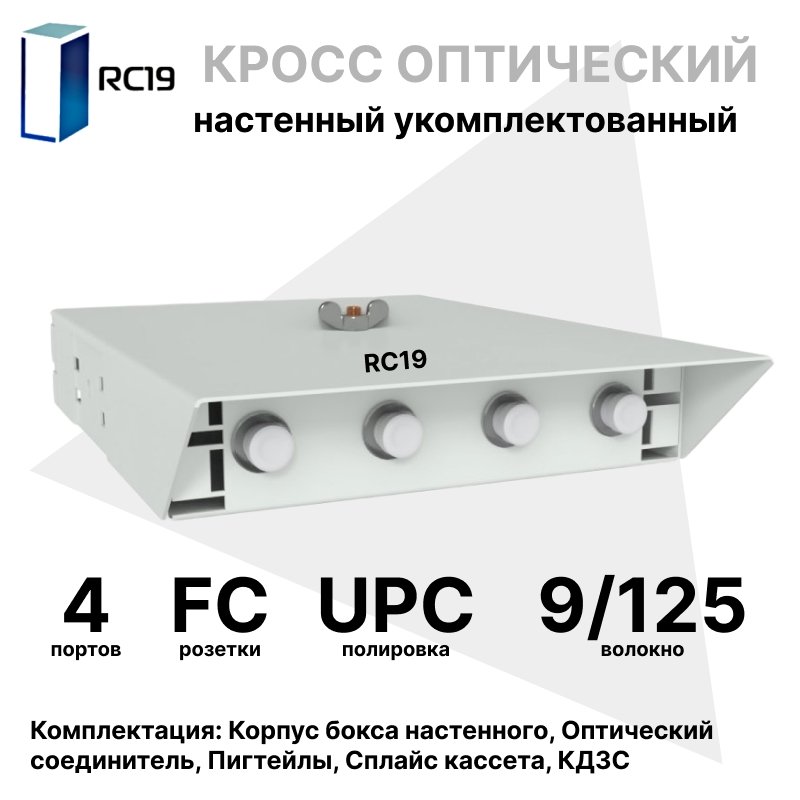 Купить по выгодной цене RC19 ШКОН-У-4-FC/UPC-9/125 Кросс оптический настенный на 4 порта FC/UPC 9/125мкм укомплектованый(пигтейл FC/UPC 9/125-4шт, розетка FC-4шт, ложемент, КДЗС-4шт) Оптический настенный бокс укомплектованный 4 FC/UPC в Anbik. Доставка по Москве и России. Самовывоз.