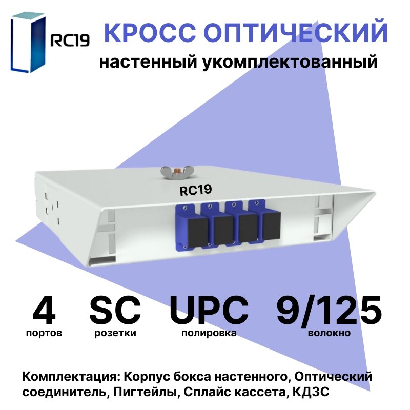 Купить по выгодной цене RC19 ШКОН-У-4-SC/UPC-9/125 Кросс оптический настенный на 4 порта SC/UPC 9/125мкм укомплектованый(пигтейл SC/UPC 9/125-4шт, розетка SC-4шт, ложемент, КДЗС-4шт) Оптический настенный бокс укомплектованный 4 SC/UPC в Anbik. Доставка по Москве и России. Самовывоз.