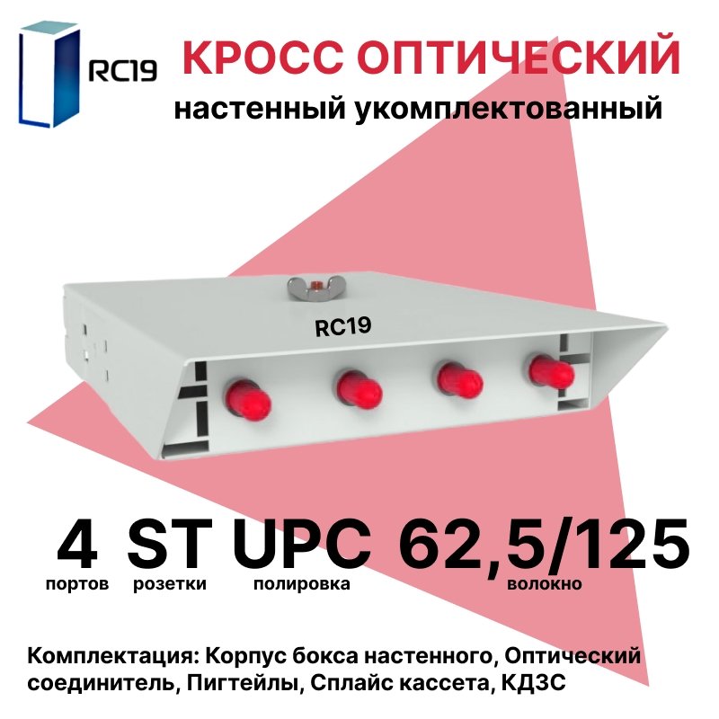 Купить по выгодной цене RC19 ШКОН-У-4-ST/UPC-62,5/125 Кросс оптический настенный на 4 порта ST 62,5/125мкм предсобранный (пигтейл ST 62,5/125-4шт, розетка ST-4шт, ложемент, КДЗС-4шт) Оптический настенный бокс укомплектованный 4 ST/UPC в Anbik. Доставка по Москве и России. Самовывоз.