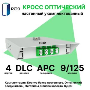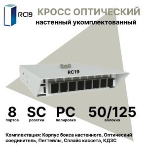 RC19 ШКОН-У-8-FC/UPC-9/125 Кросс оптический настенный на 8 портов FC/UPC 9/125мкм укомплектованый(пигтейл FC/UPC 9/125-8шт, розетка FC-8шт, ложемент, КДЗС-8шт) Оптический настенный бокс укомплектованный 8 FC/UPC