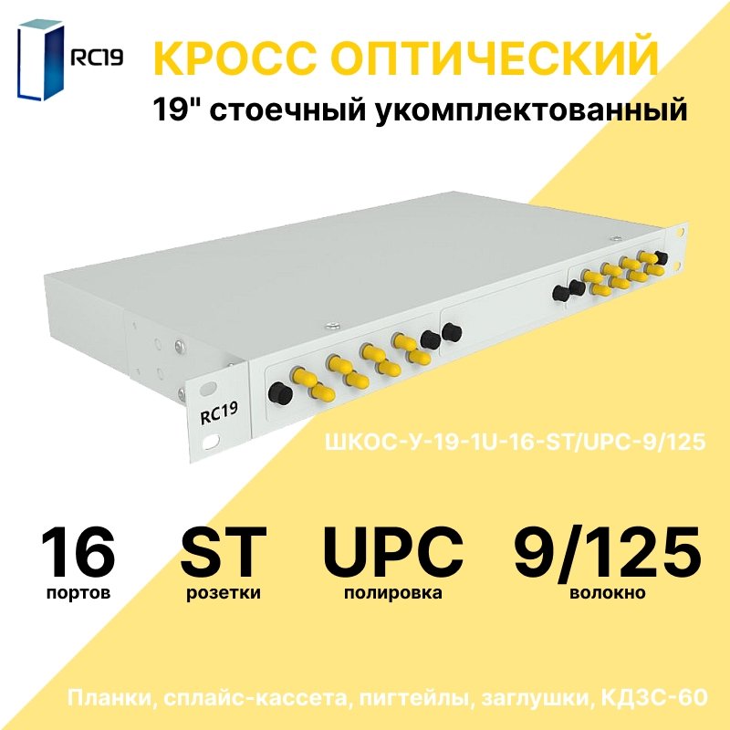 Купить по выгодной цене RC19 ШКОС-У-19-1U-16-ST/UPC-9/125 Кросс оптический 19amp;quot; стоечный 1U на 16 портов ST/UPC 9/125мкм укомплектованный оптический бокс (пигтейл ST 9/125-16шт, розетка ST-16шт, КДЗС-16шт) в Anbik. Доставка по Москве и России. Самовывоз.