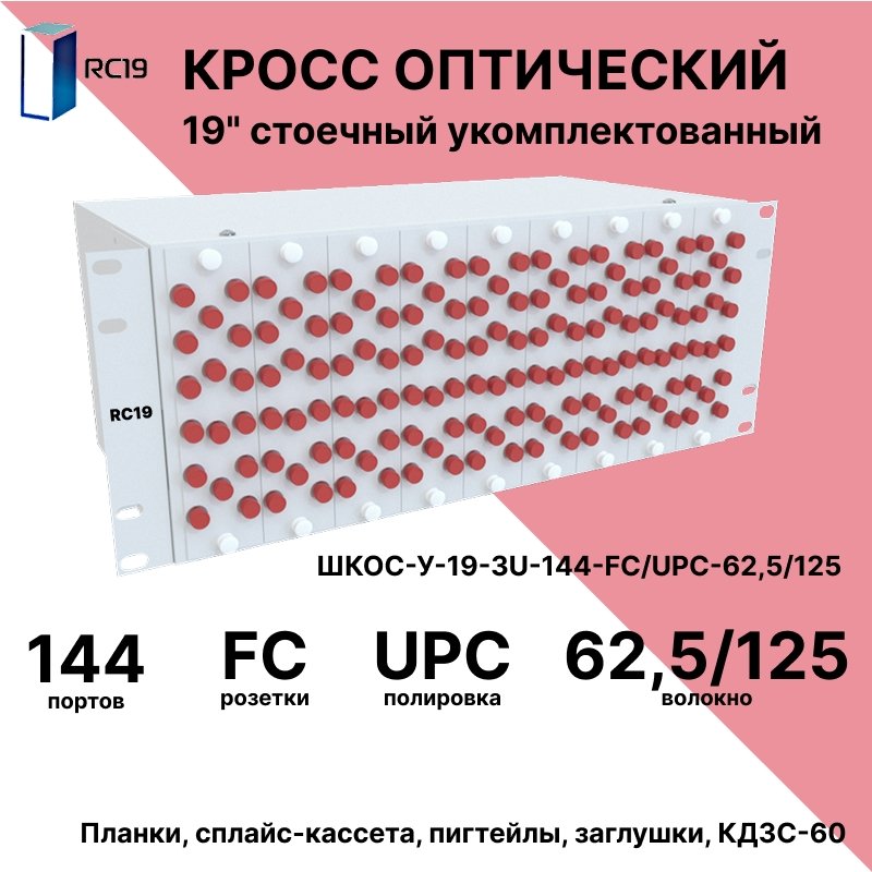 Купить по выгодной цене RC19 ШКОС-У-19-4U-144-FС/UPC-62,5/125 Кросс оптический 19amp;quot; стоечный 4U на 144 порта FС/UPC 62,5/125мкм укомплектованный оптический бокс (пигтейл FС/UPC 62,5/125-144шт, розетка FС-144шт, КДЗС-144шт) в Anbik. Доставка по Москве и России. Самовывоз.