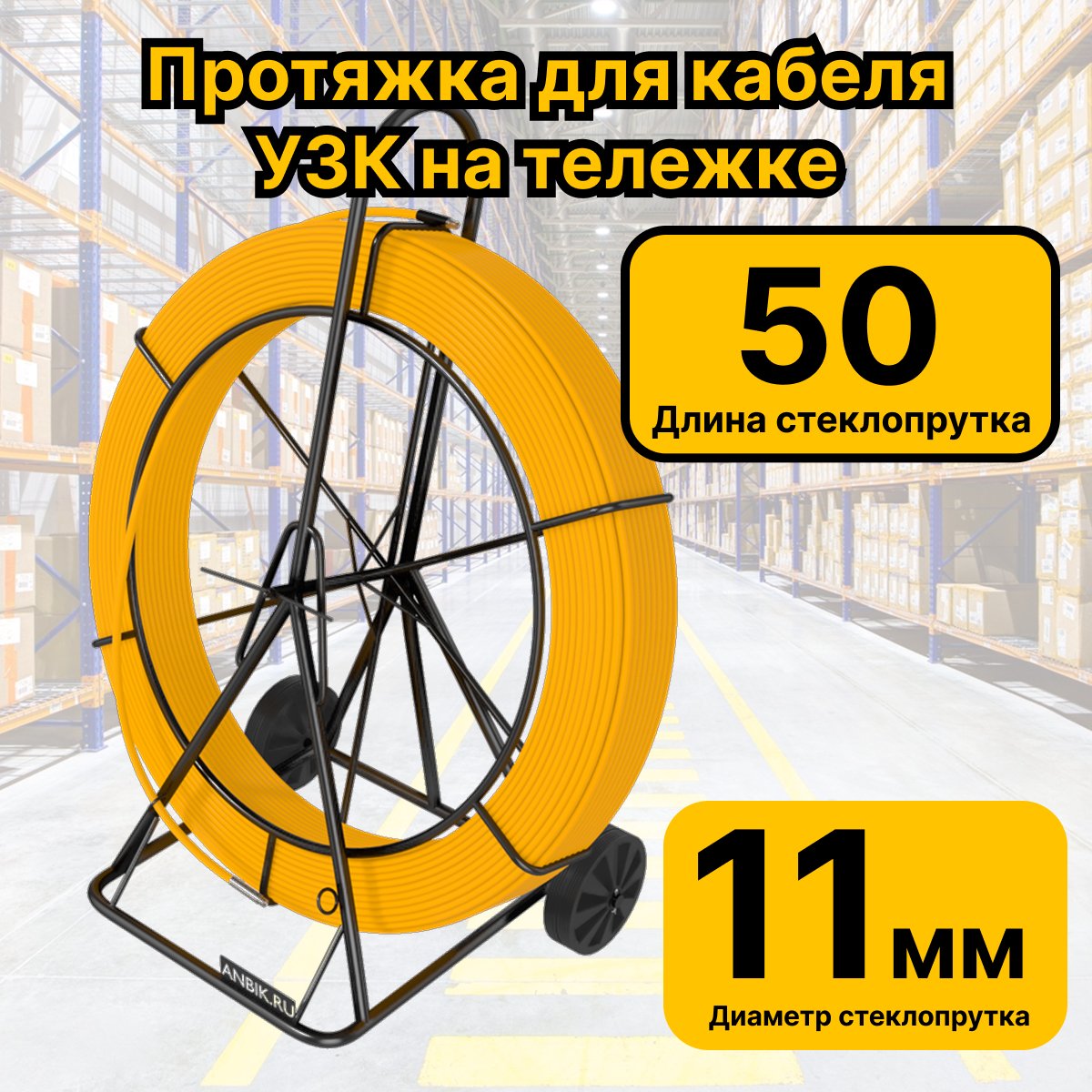 Купить по выгодной цене RC19 УЗК-М-СП-11-50 Кабельная протяжка 50 метров стеклопруток d 11мм, на тележке, желтый в Anbik. Доставка по Москве и России. Самовывоз.