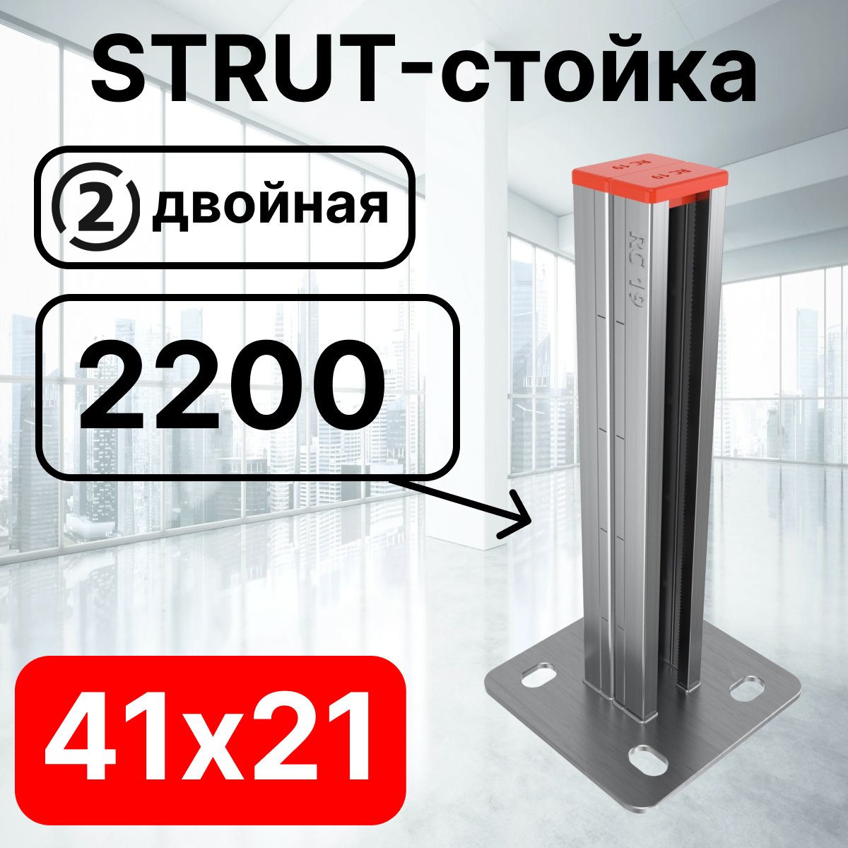 Купить по выгодной цене STRUT-стойка двойная 41х21, длинной 2200 мм RC19 в Anbik. Доставка по Москве и России. Самовывоз.