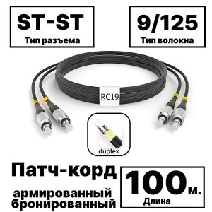 RC19 PC-ARM-2×3,0-2ST/UPC-2ST/UPC-SM-100м-LSZH Патч-корд оптический армированный бронированный duplex ST-ST 9/125 (G.657A1) одномодовый SM (3.0мм) LSZH, 100м армированный шнур оптический duplex O 3,0мм