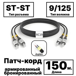 RC19 PC-ARM-2×3,0-2ST/UPC-2ST/UPC-SM-150м-LSZH Патч-корд оптический армированный бронированный duplex ST-ST 9/125 (G.657A1) одномодовый SM (3.0мм) LSZH, 150м армированный шнур оптический duplex O 3,0мм