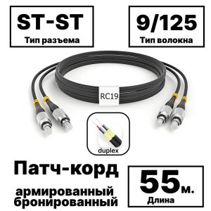 RC19 PC-ARM-2×3,0-2ST/UPC-2ST/UPC-SM-55м-LSZH Патч-корд оптический армированный бронированный duplex ST-ST 9/125 (G.657A1) одномодовый SM (3.0мм) LSZH, 55м армированный шнур оптический duplex O 3,0мм