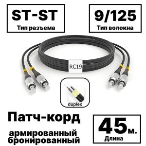 RC19 PC-ARM-2×3,0-2ST/UPC-2ST/UPC-SM-45м-LSZH Патч-корд оптический армированный бронированный duplex ST-ST 9/125 (G.657A1) одномодовый SM (3.0мм) LSZH, 45м армированный шнур оптический duplex O 3,0мм
